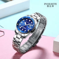 机芯:石英机芯 表壳:合金 表带:不绣钢 表镜:矿物质强化玻璃 防水:生活防水