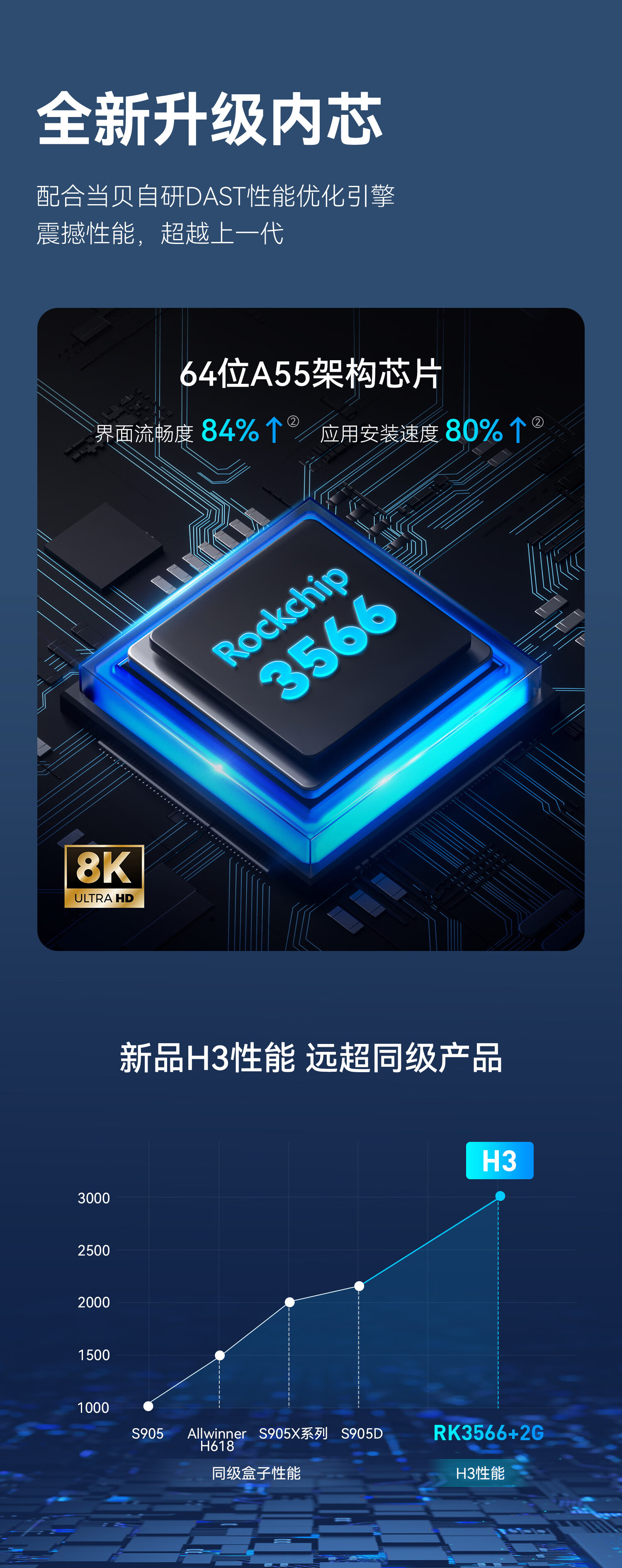 当贝电视盒子H3 智能网络电视机顶盒 2G+32G内存 8K强悍解码 HDR10优化 5G双频WiFi AI智慧语音
