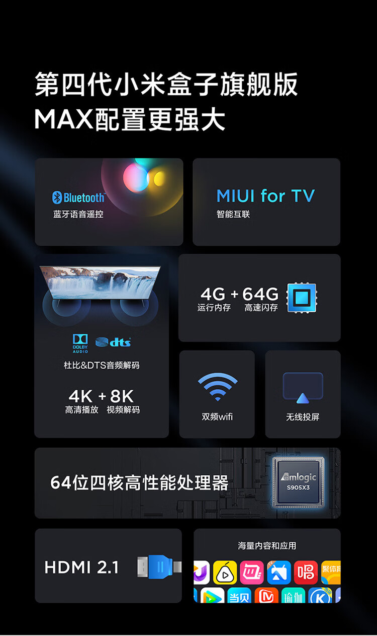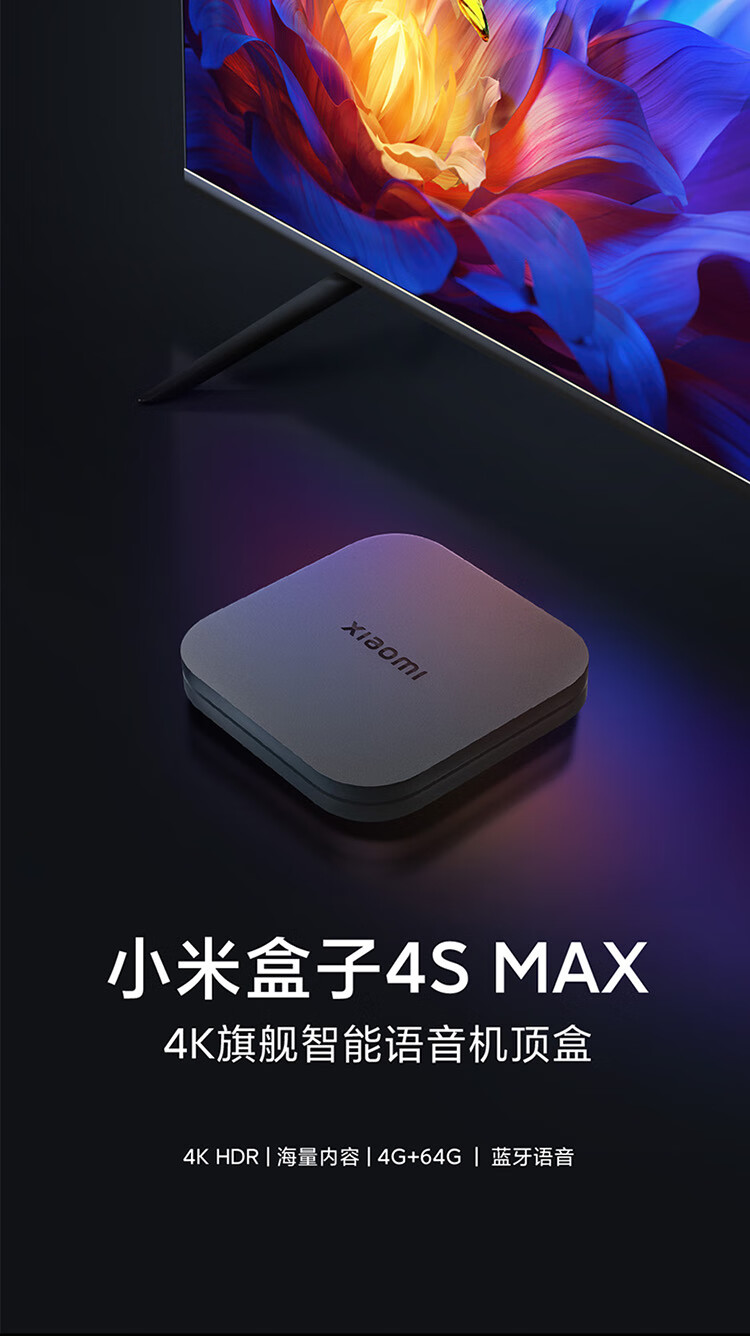 小米盒子 4S MAX 4K旗舰智能语音机顶盒 蓝牙语音遥控 手机无线投屏 64位四核高性能处理器MDZ-30-AA